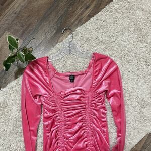Wild Fable Size XS Pink Velvet Ruched Square Neck Bodycon Mini Dress NWT