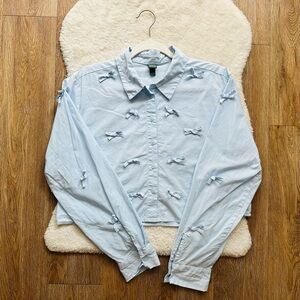 Wild Fable chic sky blue button down cropped shirt with BOWS. A great addition for everyday wear to dress up or down. Size MEDIUM!