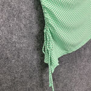 The Wild Fable Sleeveless Knit Top in green & white gingham is a stylish and trendy addition to any woman's wardrobe. With a rushed side and asymmetrical hem, it offers a unique and eye-catching design. The sleeveless top is perfect for warmer weather and can be dressed up or down for any occasion. Made from a comfortable knit fabric, this top is both fashionable and practical, making it a versatile piece for any woman's collection.