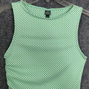 Wild Fable Sleeveless Knit Top Green Gingham Rushed Side Asymmetrical Women S