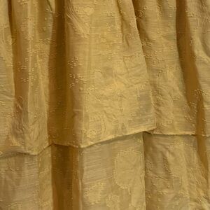 Beautiful tiered detailed sleeveless blouse that is a yellow gold. Perfect to dress up or down for summer. Beautiful detail