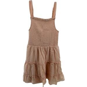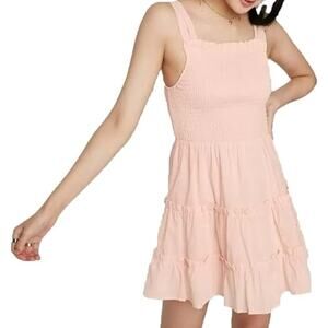 Wild Fable Smocked Mini Dress Tiered Square Neck Sleeveless Stretch Cotton Peach Medium