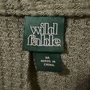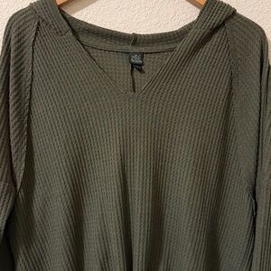 Wild Fable Soft, Hooded, Drop Shoulder Waffle Knit Pullover,Olive Green,Medium