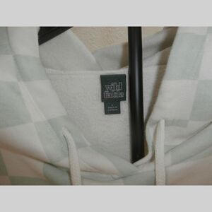 Wild Fable checkered hoodie. Dot mint green jade on cream background. Drawstring hoodie. Oversized with kangaroo pocket. Size large-see photos.