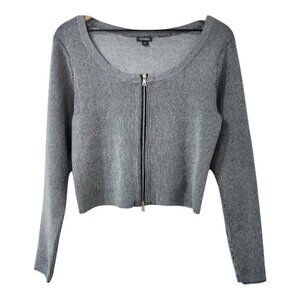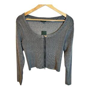 Wild Fable Striped Blue and White Zip-Up Cardigan Medium Cropped Ribbed Fitted