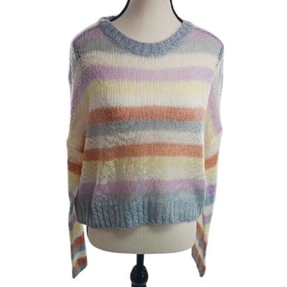 Wild Fable Sweater Womens Size M Multicolor Striped Knit Semi Cropped Casual