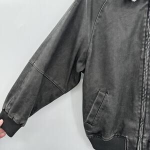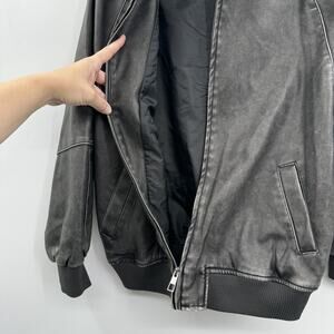 Wild Fable Target Faux Leather Bomber Jacket Sz Small Black Distressed Oversized