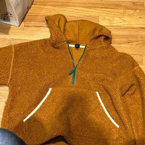 Stylish taupe sweatshirt with bow detail, soft lining for added warmth.