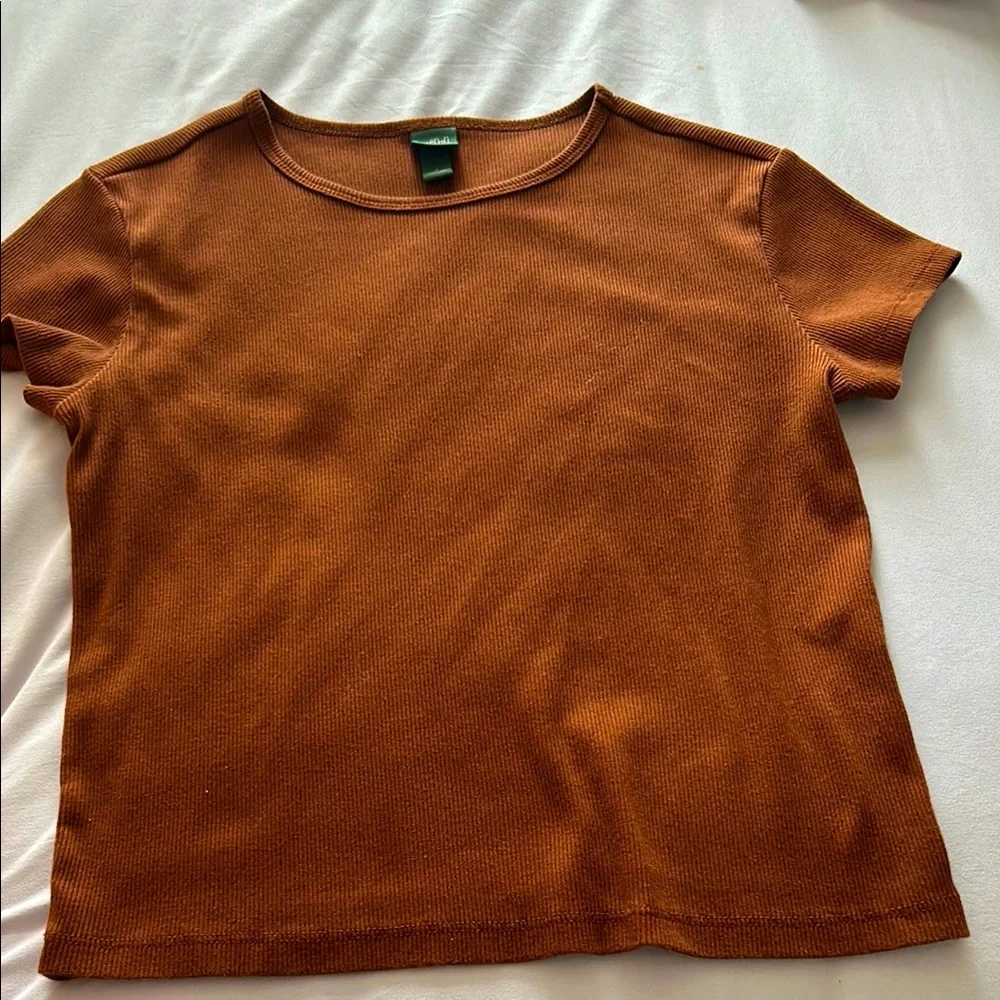 Chic terracotta ribbed tee. Ideal for everyday style.