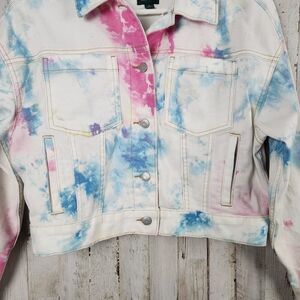 Wild Fable Tie Dye Jean Jacket White, Pink & Blue.