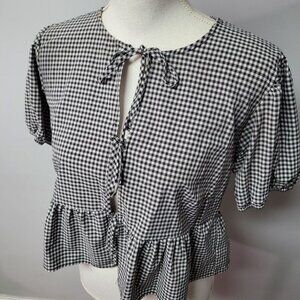 Wild Fable Tie Front Top Blouse Black White Checkered Womens Small Cropped