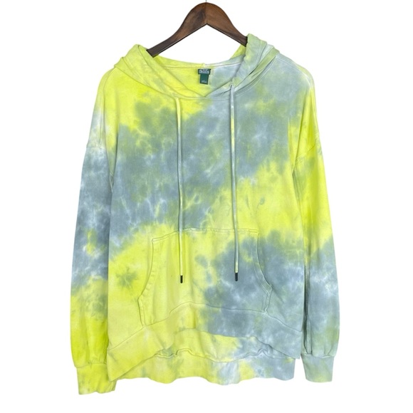 Stylish tie-dye hoodie by Wild Fable. Features a vibrant mix of yellow and gray. Ideal for everyday comfort. Single front pocket with adjustable drawstring hoodie.