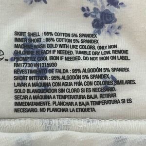 Wild Fable Woven Tiered Mini Skirt in White and Blue Floral Print. Made of a lightweight blend of cotton, cotton and spandex for flexible comfort. Designed with a regular-rise silhouette and built-in shorts. band waist completes the style with easy pull-on convenience.