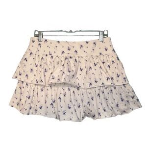 Wild Fable Tiered Mini Skort Skirt White Blue Floral Print L