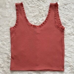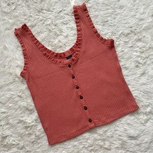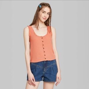 Wild Fable Top Tank Ruffle Button Front Scoop Neck Waffle Knit Rust S NWT New