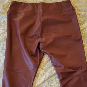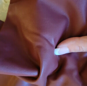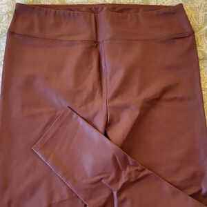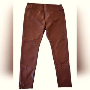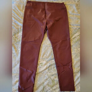 Rich burgundy leather-look leggings with stretch. Great for fall with a cozy oversized sweater and boots, or paired with heels for a night out!