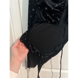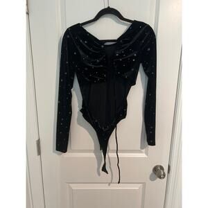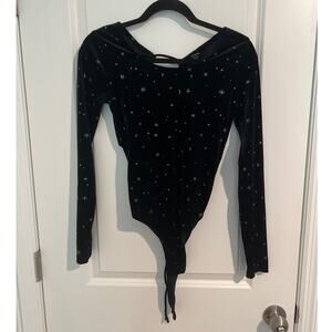 Wild Fable Velvet Stars & Moons Long Sleeve Keyhole Open Back Bodysuit Black S
