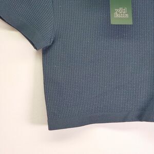 New with tags Wild Fable women's short sleeve t-shirt in a dark navy waffle knit. Cropped fit with stretch, ideal for layering or casual everyday wear. Made from a nylon-spandex blend for softness and shape retention. Collarless, pullover style—great for warm weather or all-season layering.