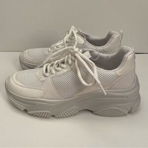 Stylish white sneakers with a chunky sole. Features mesh and faux leather details. Perfect for casual wear.