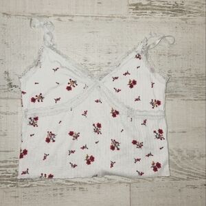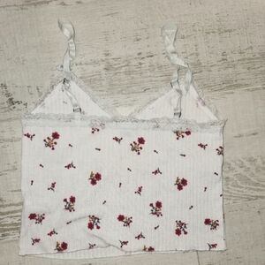 Wild Fable White Pink Floral Ribbed Crop Top Tank Cami size Medium