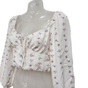 Wild Fable White Puff Sleeve Crop Blouse Milkmaid Cottage Tie Front Size Small
