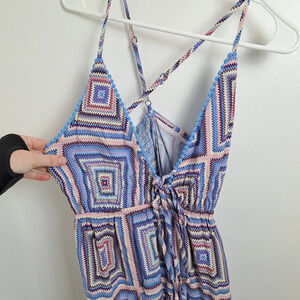 Wild Fable White Purple Geometric Babydoll Fit & Flare Mini Dress Size Medium
