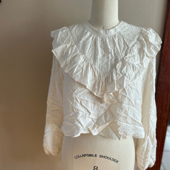 Chic blouse with layered ruffles. Perfect for casual or dressy looks.