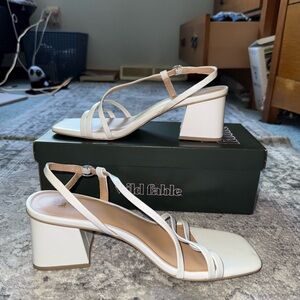 Elegant white heels with strappy design. Ideal for stylish outings.