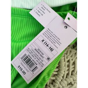 Wild Fable White and Green Ribbed Low Rise High Leg Bikini Size X 14/16 New
