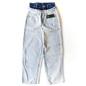 Waist: 12" Top dark jean part, 13 1/2" light jean