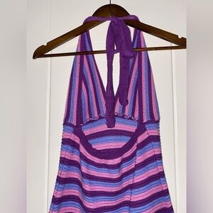 Wild Fable Women Crochet Halter Striped M Mini Dress Boho Hippie Whimsical
