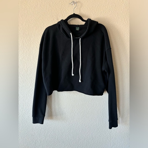 Wild Fable Women Extra Large Solid Ebony Cropped Hoodie Sweatshirt White Strings