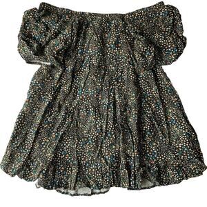 Wild Fable Women Mini Dress size M Off Shoulder Fluffy Soft Sleeve Floral Black