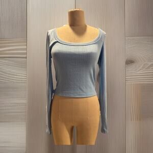 Wild Fable Women Small Trendy Square Neck Blue Long Sleeve Pointelle Shirt New