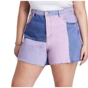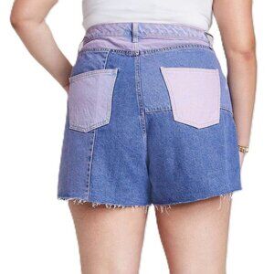 Wild Fable Women's 0 Purple & Blue Patchwork Super High Rise Cut Off Jean Shorts