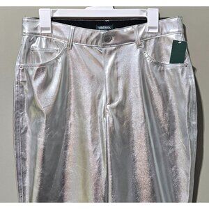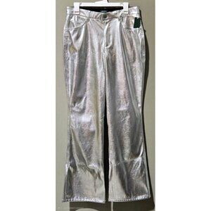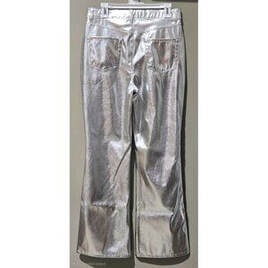 Wild Fable Women's 17 Metallic Silver High Rise Faux Leather Flare Leg Pants