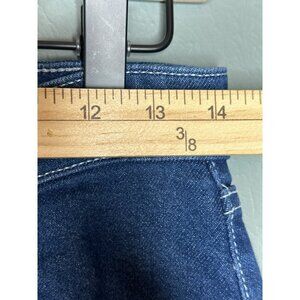 Color: dark wash blue with light colored contrasting stitching