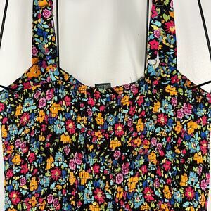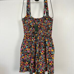 Brand new Wild Fable women's black floral print sleeveless button-front romper with adjustable straps and smocking on back - size XS.