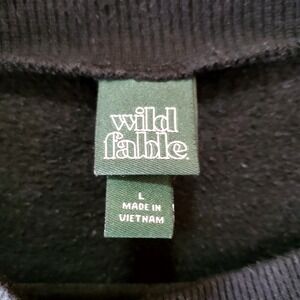 The Wild Fable Women's Black Long-Sleeved Sweatshirt is a cozy and soft pullover designed for everyday wear. Made from a blend of polyester and cotton, this sweatshirt features a solid black color with a classic crew neck and long sleeves. It is machine washable and suitable for travel, activewear, and casual occasions. This size L sweatshirt by Wild Fable is perfect for the modern woman looking for a comfortable and easy-care wardrobe staple.