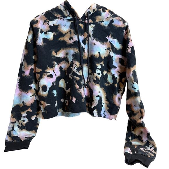 Wild Fable Women's Black Tie-Dye Cropped Long Sleeve Hoodie - Size Medium - NWT