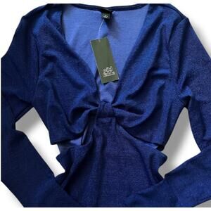 Wild Fable Women’s Blue Long Sleeve Cut Out Lurex Bodycon Dress Small NWT