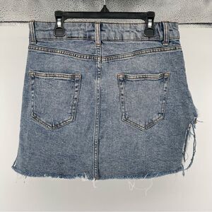 Wild Fable Women’s Blue Raw Fringe Hem Double Slit Denim Jean Mini Skirt Size 10