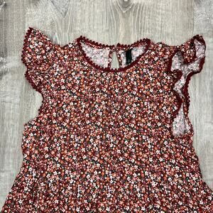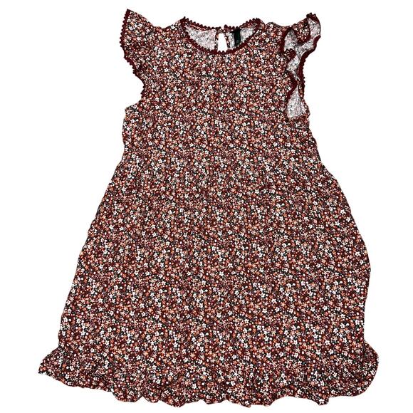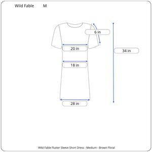Wild Fable Women's Brown Floral Flutter Short Sleeve Trapeze Dress - Med - NWT