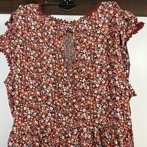 Brand new Wild Fable women's brown floral flutter short sleeve trapeze dress with keyhole opening in back - size medium - see measurements in third picture.