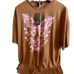 Brand new Wild Fable women's brown short sleeve butterfly graphic oversized t-shirt - size small.