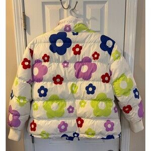 The Wild Fable Women's Colorful Flower Puffer Jacket Coat in size Large is a stylish and cozy option for the winter season. Made from soft polyester with quilted accents, this short-length jacket features a colorful flower pattern, perfect for adding a pop of color to your outfit. With a full zip closure, collared neckline, and padded insulation, this jacket is designed for warmth and comfort. The moisture-wicking fabric ensures you stay dry in cooler weather, making it ideal for casual outings in the fall, winter, or spring. Pit to pit approximately 24". Length shoulder to hem approx. 25".