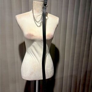 Spruce up your outfit with this stylish Wild Fable fashion 43 inches belt. It's crafted from high-quality black leather and features stunning rhinestone accents for an added touch of elegance. The belt is designed with an adjustable feature to cater to your comfort and fit, while its medium belt width and large width guarantee a secure hold.