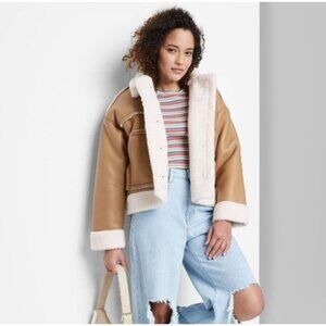 Wild Fable Women’s Faux Leather Jacket with Shearling Lining Light Brown XS