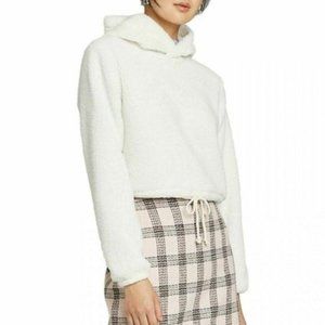 Wild Fable Women's Hooded Faux Fur Sherpa Crop Sweatshirt Ivory Size XS