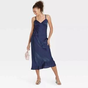 Wild Fable Women's Iridescent Maxi Slip Dress Navy Size Medium